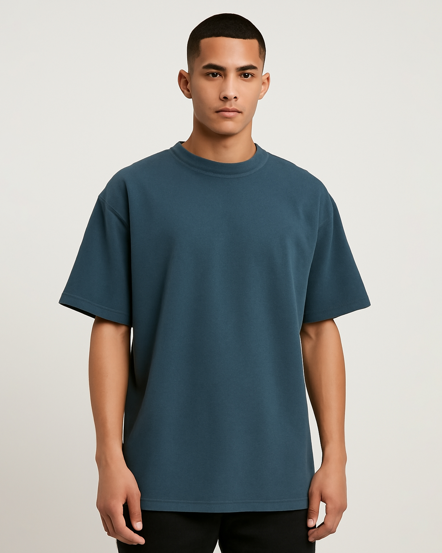 A cool-toned Airforce blue tee in a relaxed, street-ready silhouette. This oversized T‑shirt blends ultra‑soft cotton, drop shoulders, and a boxy drape for effortless style and everyday comfort.