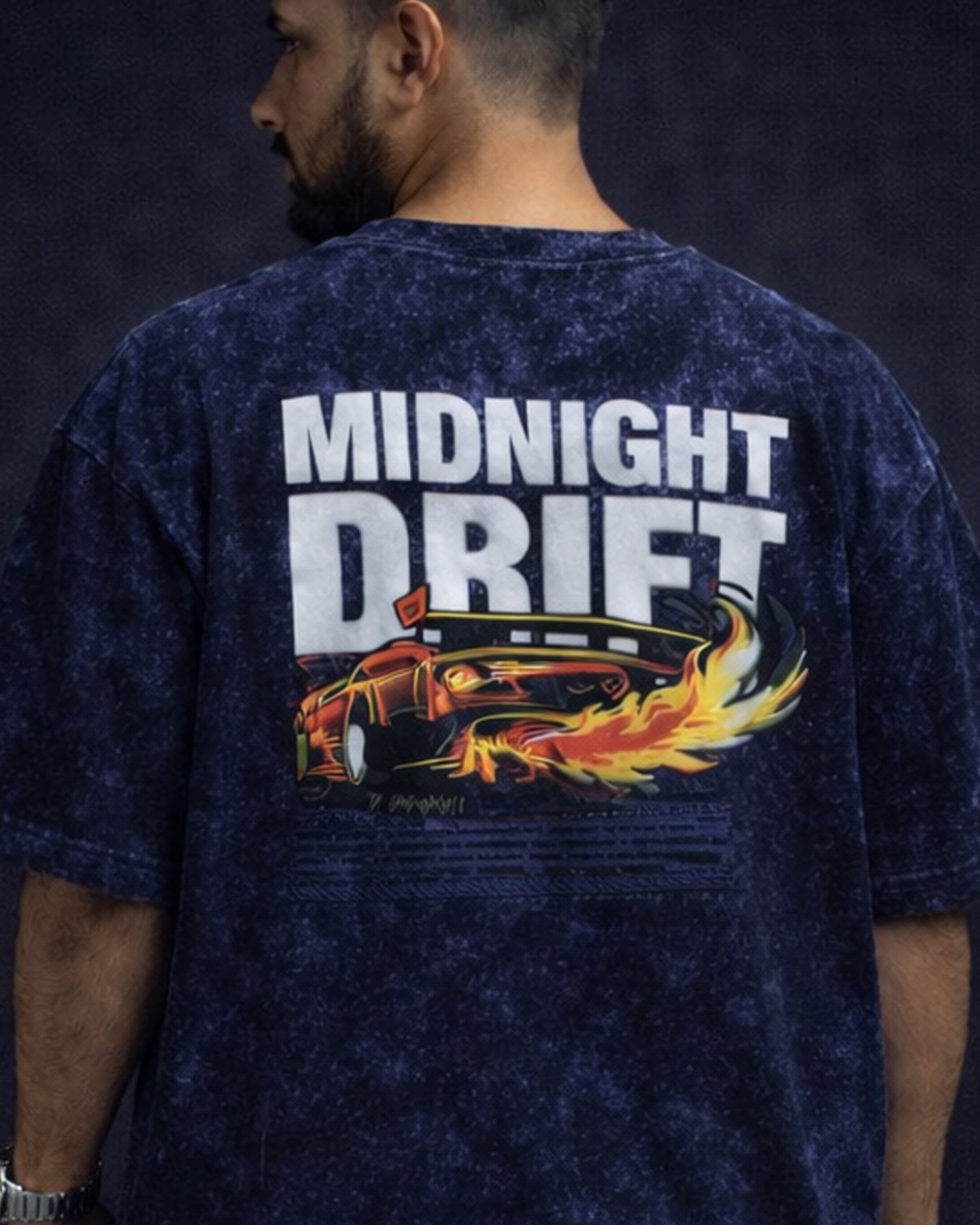 Make a bold statement with the Midnight Drift Blue Acid-Wash Puff Print Oversized T-Shirt. Designed for modern streetwear lovers, this tee features raised puff print detailing that adds depth, texture, and a premium 3D feel. The blue acid-wash finish brings a cool, edgy vibe while keeping the look effortlessly stylish.